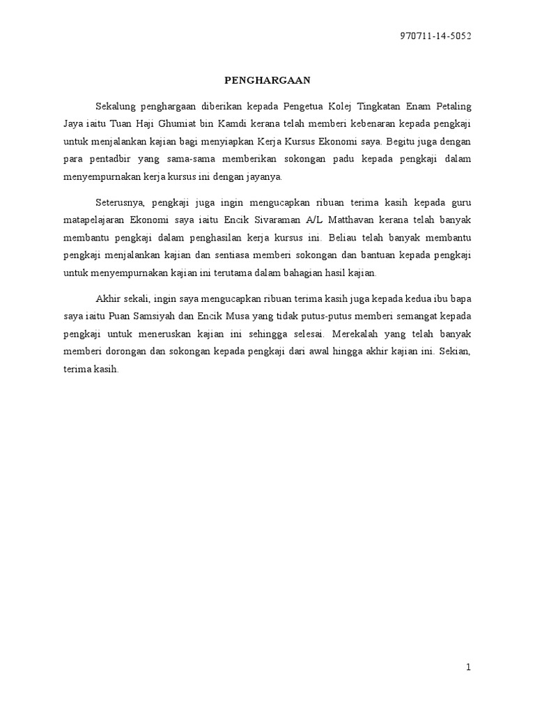 Contoh Kerja Kursus Ekonomi 2017